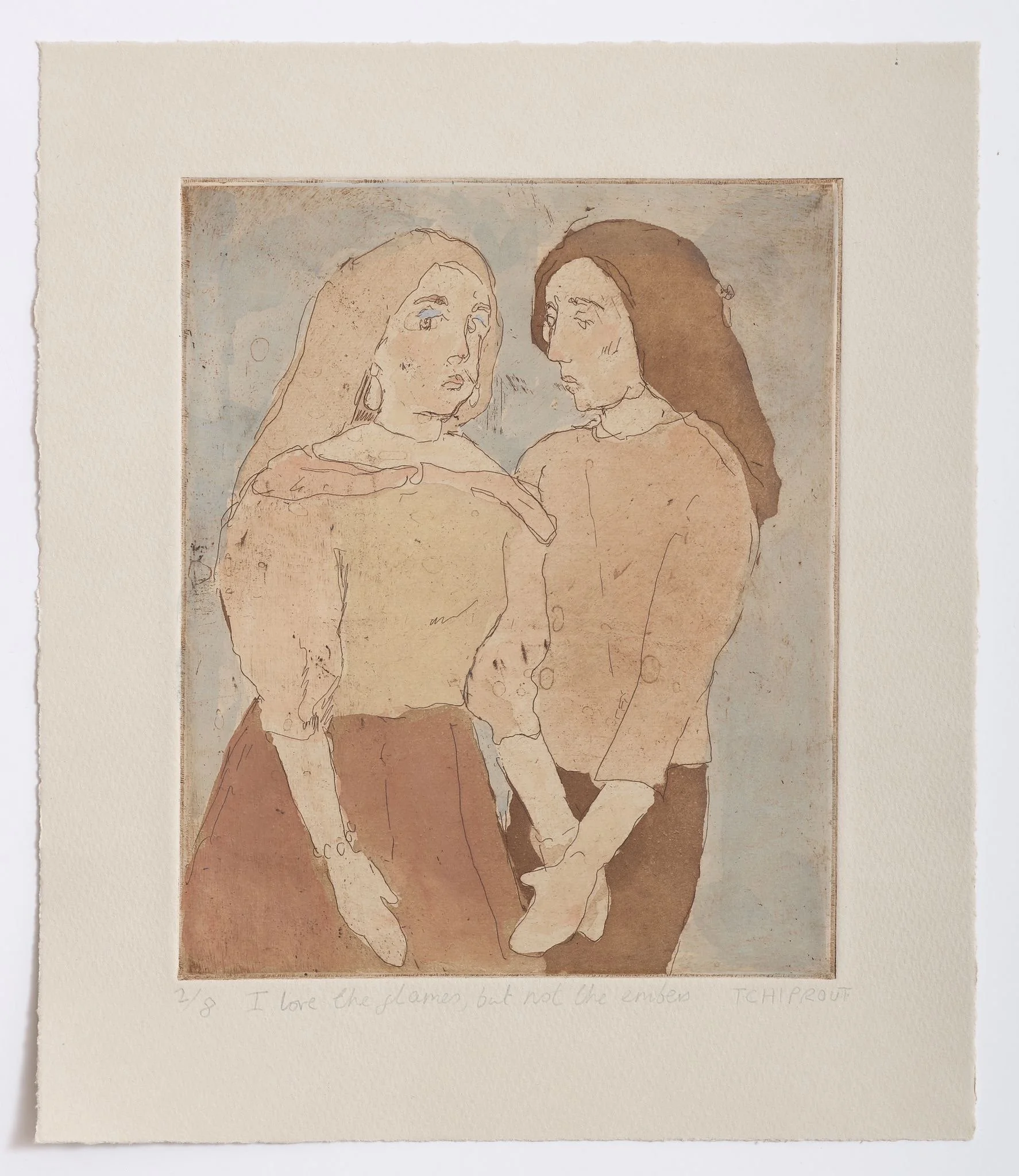 unframed etching 4/8 signed and hand coloured by the artist