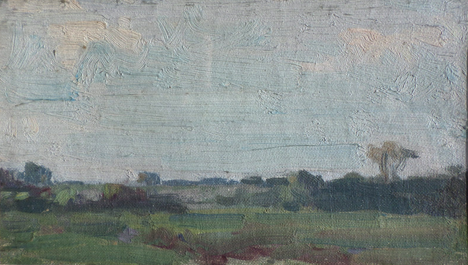 Oil on Artist board  "Madderton & Co Cambridge Canvas board", dating from circa 1910-1920. This wonderful, impressionist style, work is one of 3 all on the same boards and framed identically as a set by Rowley Gallery London in early 1960's. Label verso with hand written reference/stock number and namer of artist.